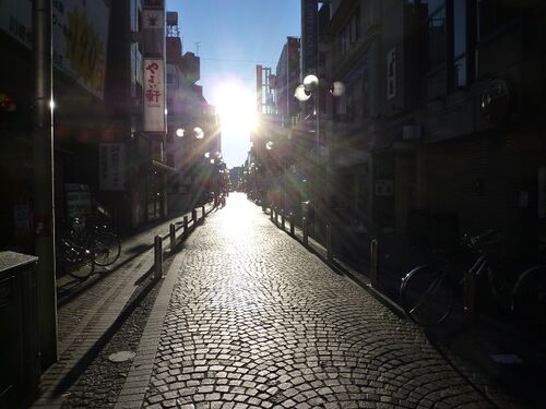謹賀新年 皆様あけましておめでとうございます! 本年もよろしくお願い致します 写真は2016/1/1 朝7:51 川崎チネチッタに『スター・ウォーズ/フォースの覚醒』を観に行く途中、川崎銀柳街と仲見世通りの交わる部分[Google マップ]から東南の方向を向けて…