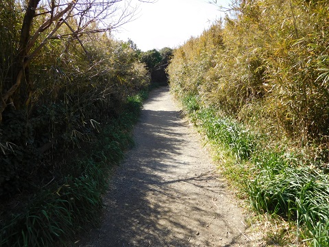 草などのせいで見た目より狭く感じる道を歩いて行くと